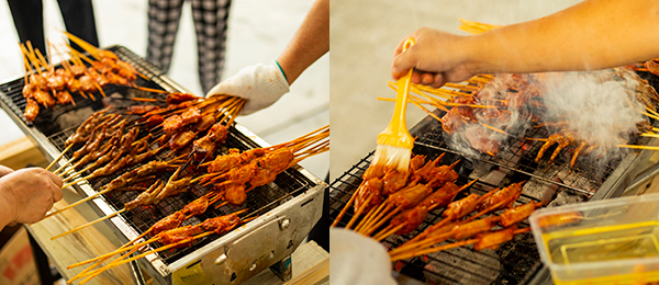 刷著油的雞翅,在炭火的炙烤下散發(fā)出迷人的香味。